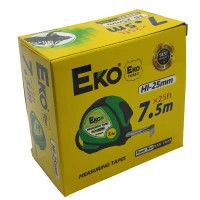 بدنه ضد ضربه و محکم از جنس ABS دارای روکش لاستیکی ضربه گیر تیغه سفید , براق با مقیاس متریک قلاب آهن ربایی قوی و ۳ پرچ دارای بست کمر بندی دارای صفر اتوماتیک