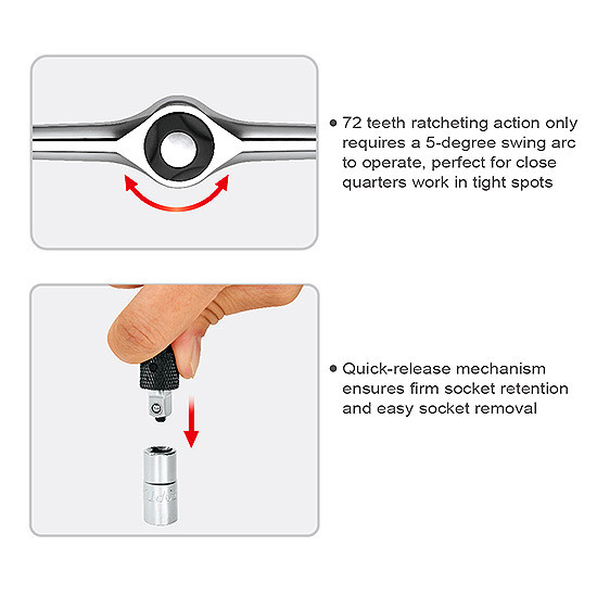 آچار دسته تی جغجغه دار خلاص کن اتومات 1/4 تاپ تول مدل CTRM0826