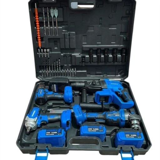 این کیت دارای سه عدد باتری 24 ولت با ظرفیت 3 آمپر ساعت است که امکان استفاده طولانی مدت از ابزارها را فراهم می کند. پایه فست شارژ موجود در این کیت، باتری ها را در مدت زمان کوتاهی شارژ می کند و زمان توقف کار را به حداقل می رساند.