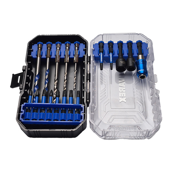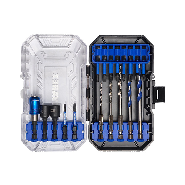 یک رابط بیت خور فنری دو عدد بکس سر دریلی مگنتی در سایز 8 و 10 میلی متر سه نوک پیچ گوشتی چهارسو سه نوک پیچ گوشتی چهارسو چاک دار چهار نوک پیچ گوشتی ستاره ای دو مته الماسه سایز 7 و 8 میلی متر سه مته آهن HSS سایز 3 و 4 و 5 میلی متر