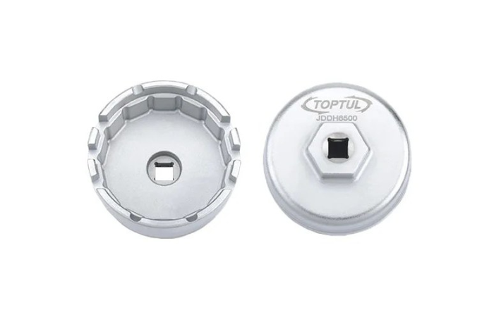 فیلتر بازکن تویوتا مدل JDDH6501 ساخت کشور تایوان مناسب موتور های 4، 6 و 8 سیلندر دیزل تویوتا ساخته شده از آلیاژ آلومینیوم با مقامت بالا و مستحکم سایز فیلتر باز کن 64.5 میلی متر با فلوت 14 جهت جمع آوری سریع پوشش فیلتر روغن در حین گنجاندن فیلتر روغن مناسب ماشین های لکسوس، کرولا، سکویا، تندرا و 4رانر قابلیت استفاده از ابزار درایو مربعی 3/8 اینچی یا آچار سوکت 27 میلی متری است.